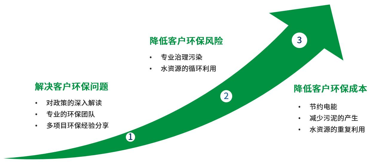 公司專注于各種高難度工業(yè)廢水處理、噴房循環(huán)水處理、冷卻循環(huán)水處理、純水制備、固廢及危廢減量化、廢水資源化利用等。提供現場運營服務、專用化學品管理、環(huán)保技術咨詢等相關的一體化解決方案和服務,旨在為客戶解決各項環(huán)保難題,并成為客戶忠實的戰(zhàn)略合作伙伴。